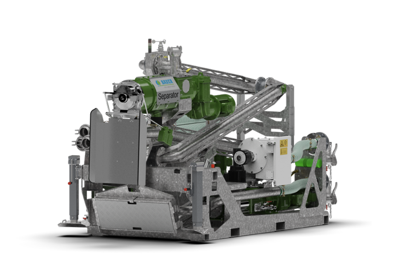Das BAUER Plug & Play Separator-System ist eine kompakte Einheit, bei der sämtliche Komponenten auf engstem Raum verbaut sind. Von der Einbringpumpe über die Leitungen bis zur elektronischen Steuerung. Ein kleines Raumwunder mit enormer Leistung, das, an die Steckdose angeschlossen, sofort und effizient die feste von der flüssigen Phase trennt.